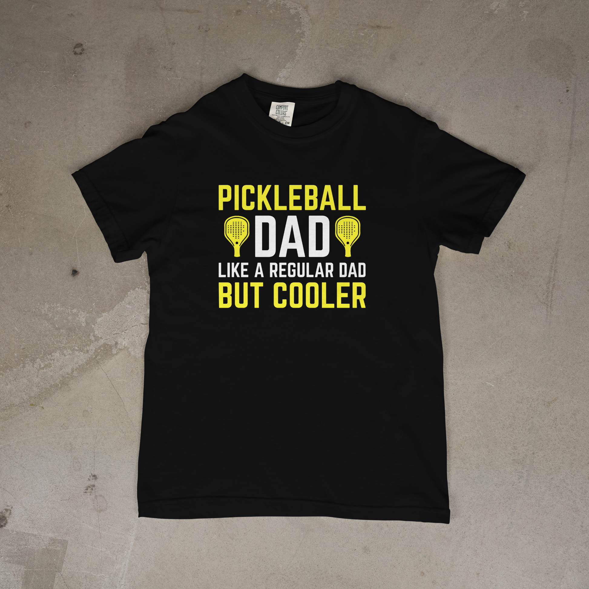 Pickleball Dad Like a Regular Dad But Cooler Serve up some laughs with this playful tee celebrating the coolest court legend in town. Perfect for the dad who's traded the sidelines for the pickleball court—where his competitive spirit, killer serves, and dad jokes are equally legendary. Whether he's dominating tournaments or just enjoying weekend matches with friends, this shirt says it all: he's not your average parent. Soft, comfortable, and ready for court or casual wear, it's the ultimate gift for the pickleball enthusiast who takes his game (and his humor) seriously.